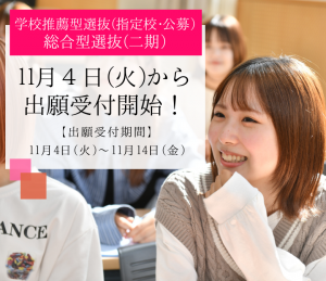 2025.10.0111月4日(火)出願受付開始!!【学校推薦型選抜(指定校・公募)/総合型選抜(二期)作文型・実践型】