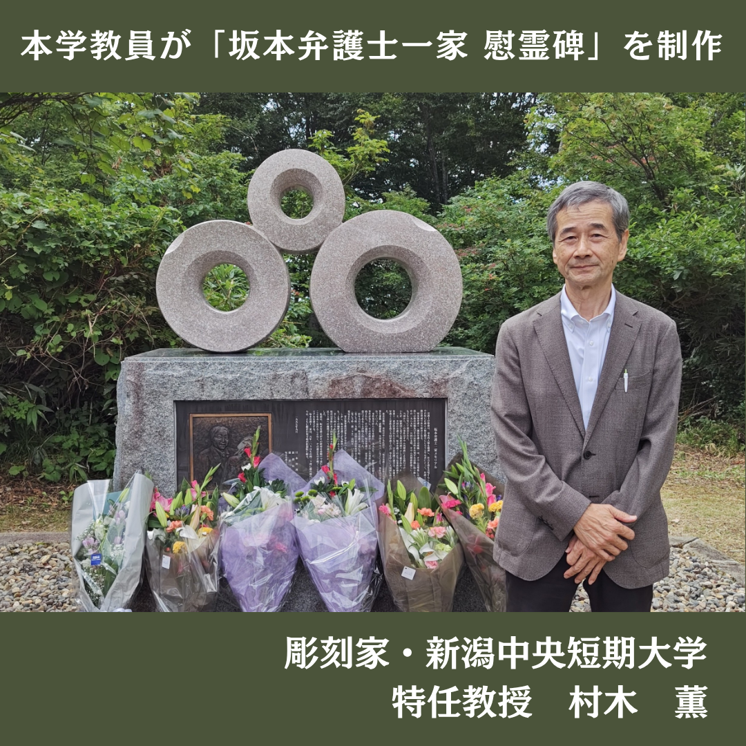 本学教員の村木薫特任教授が制作された坂本弁護士一家の慰霊碑について、新潟県上越市で行われた追悼式の様子が新聞記事として取り上げられました。